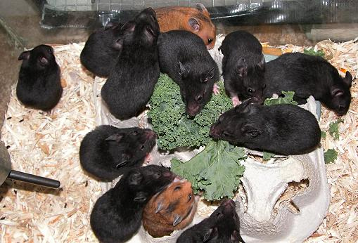 At the age of three weeks, we were fully weaned - right on schedule. It was at that time that we were transferred from the glass "maternity tank" in which we'd been born (see top photo) to a regular wire cage. Our mother would stay with us for at least another week, and then it would be time to separate us by gender, with the male children going to their own cage until they they reach adolescence (about 7 weeks), at which time each of us would be entitled to our own individual residential units.